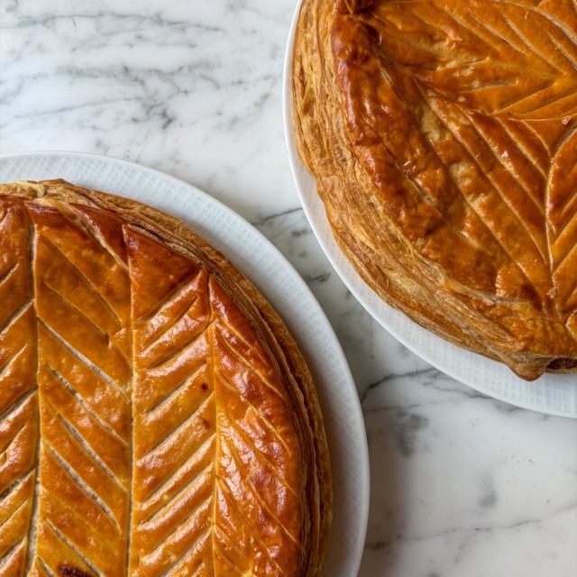 la frangipane, grand classique généreux et fondant et la pomme, plus douce et subtile.